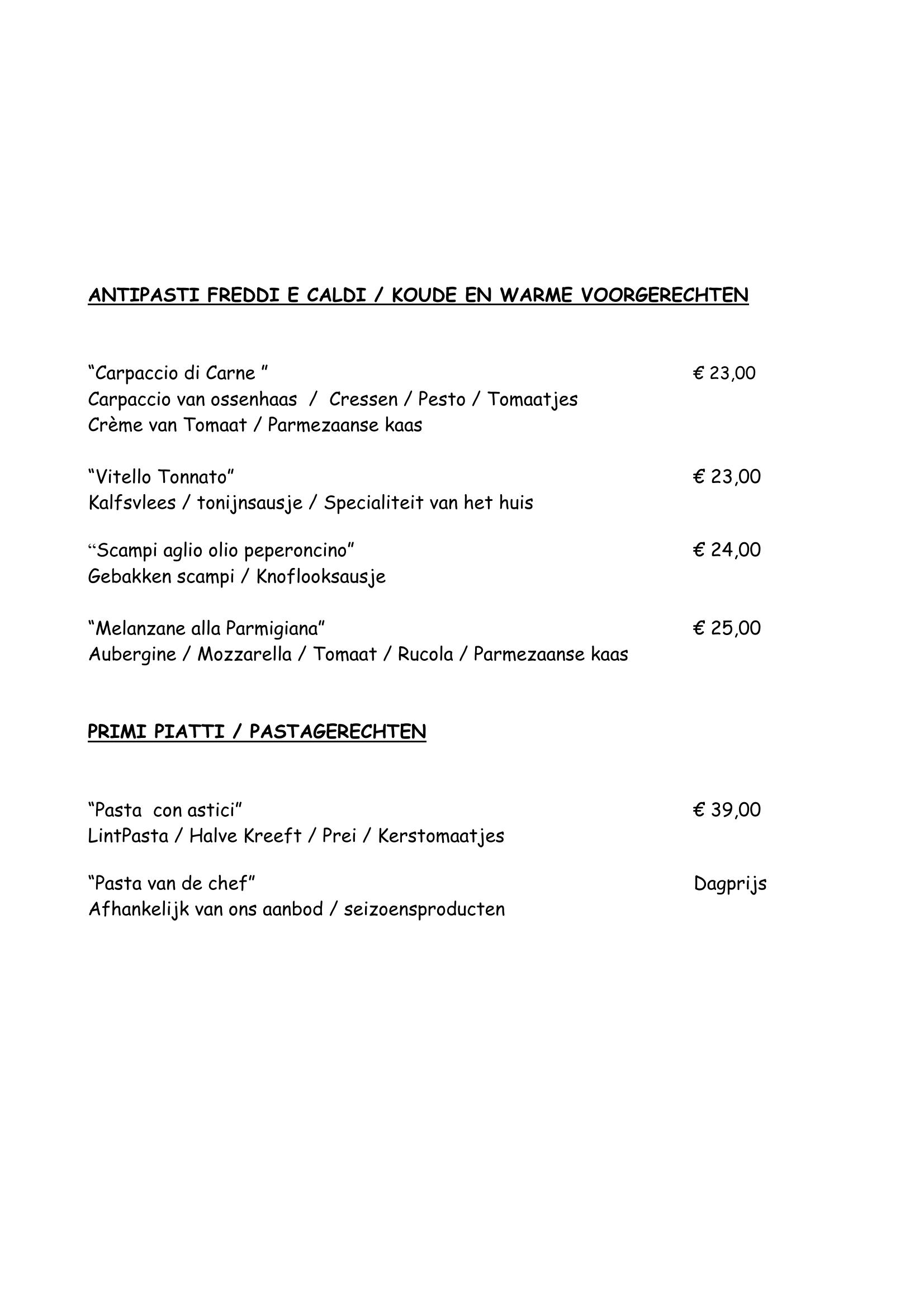 Let op: Op 14 februari serveren we enkel het Valentijn menu.